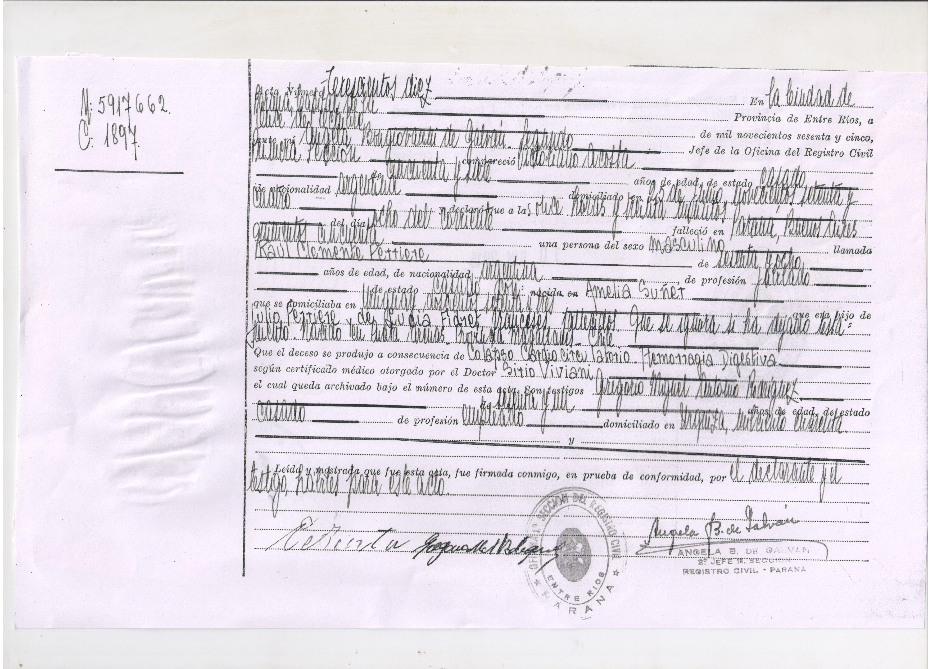 Certificado Defunción - Raúl Clemente PERRIERE Detalles Categoría: Documentos - Certificados Escrito por Maury Visto: 0 Certificado Defunción Raúl Clemente PERRIERE FIDRET